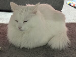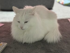 寒くなり丸まっているはんぺんさん。